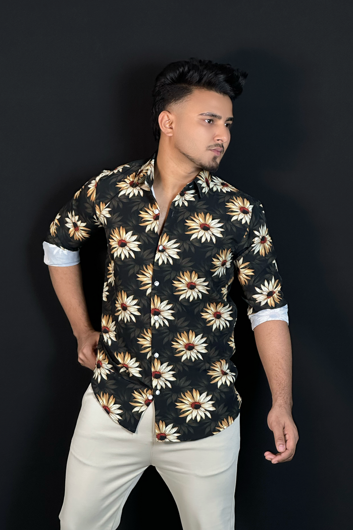 ইয়েলো ব্ল্যাক প্রিন্টেড শার্ট-Sunflower