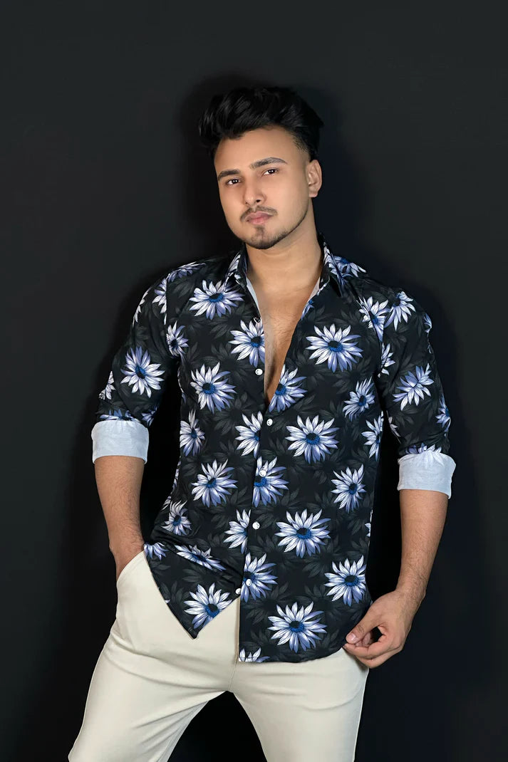 ব্লু ব্ল্যাক প্রিন্টেড শার্ট-Sunflower